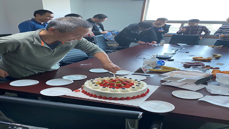 11月共有6位领导及同事庆生。会场洋溢着喜庆热烈的气氛。下午3点准时,一块奶香四溢搭配水果点缀的大蛋糕已经摆放在桌子上,静静等候着属于它的“主人”到来。