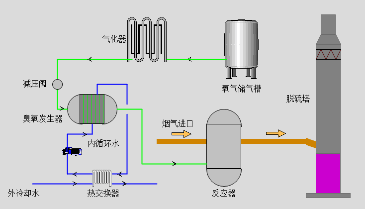 臭氧氧化吸收脱硝方法原理主要是利用氧化反应和吸收反应。