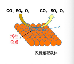CO在催化剂作用下,CO分子吸附在催化剂金属氧化物表面发生催化反应,被氧化为CO2,并释放出大量热能。催化剂产生氧空位被还原,再被解离吸附的氧补充氧缺位而重新氧化,得以再生。CO(g) + 1/2 O2(g) = CO2 ΔH298 = -282.98 kJ/mol