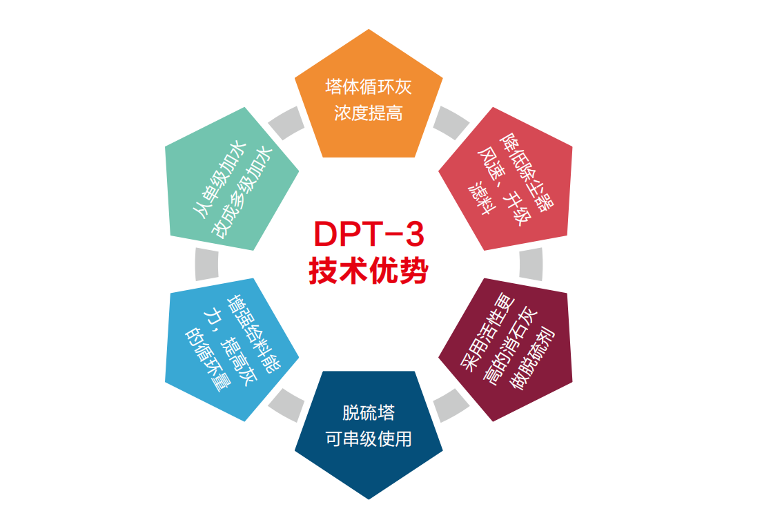 杜绝塌床——塔内整体密相、无需床层、无需净烟气循环、脱硫灰“内循环 + 外循环”抗烟气波动能力强,无塌床风险。杜绝白烟——出口烟温高于露点,无需烟气二次加热排放,无白烟。