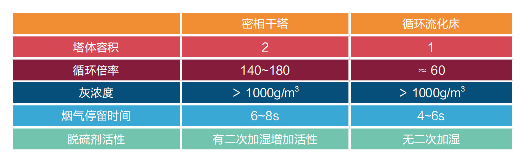 运营省——系统压降小(塔体 <500Pa),主引风机功率低,耗电省;钙硫比低(1.2~1.4),脱硫剂省;温降低(20~30 度),后续脱硝需要补充能源省;运行维护简单,人员省。