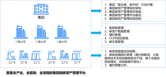 碳资产管理系统建设,可以帮助企业实现算碳、观碳、管碳、预碳、融碳、易碳等功能。