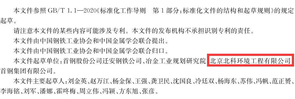 2021年12月9日,由天行足球体育(以下简称:北科环境)参与编制的《链篦机回转窑球团工艺烟气脱硝技术规范》团体标准(编号T/CISA 165—2021▏T/CSM 32—2021),由中国钢铁工业协会和中国金属学会联合发布,并于2022年3月1日起正式实施,这对于球团烟气脱硝技术的推广和应用具有重要意义,北科环境也再一次为推动国家标准建设贡献出自己的一份力量!