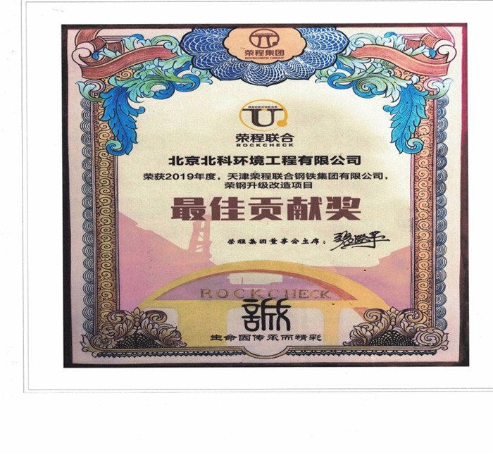 北科环境荣获天津荣程钢铁集团“最佳贡献奖”称号