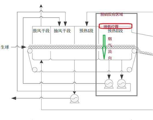北科环境,作为环保技术先导型企业临危受命,率领技术骨干对球团二系列的生产状况和改造现场进行了全面诊断。经过技术委员会多次讨论,并结合现场场地情况,本着“安全可靠、节约用地、节省投资、施工周期短、运行费用低”的原则,采用选择性非催化还原脱(SNCR)工艺在链篦机预热II段进行预先辅助脱硝。
