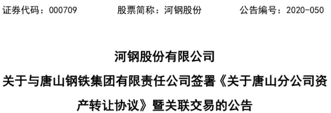同日,河钢股份公告称,公司于9月8日与河钢唐钢签署了《关于唐山分公司资产转让协议》,拟将唐山分公司关停资产转让给唐山钢铁集团有限责任公司。